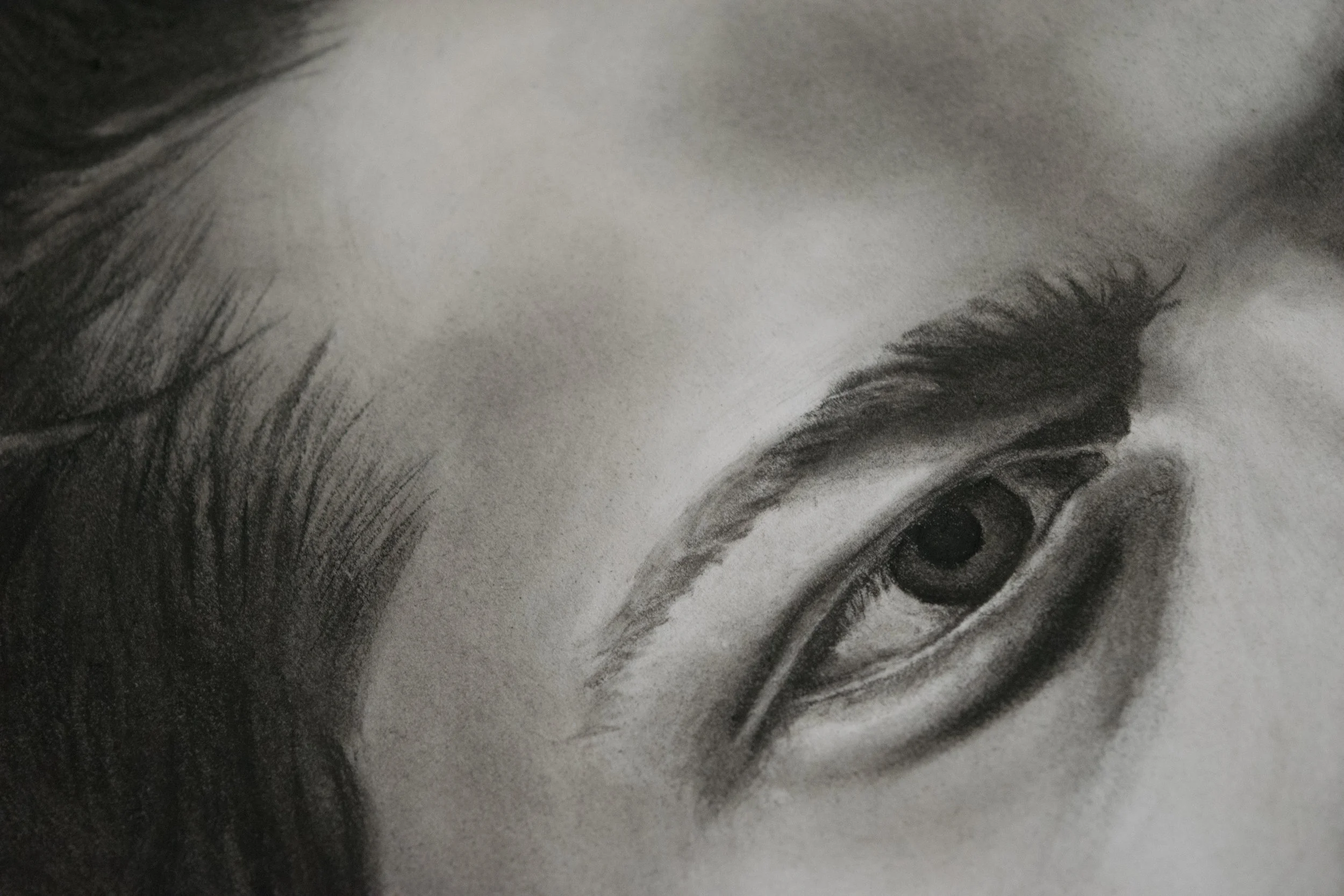 I realized there's no size reference in the photos, they're both 18" x 24" sheets. Finished both of these this weekend. I'm starting to get use to working with charcoal; After a long and difficult few weeks, I've discovered my tool of choice: the foam brush! Makes the subtle gradients much easier to control and is much faster than the blending stump.